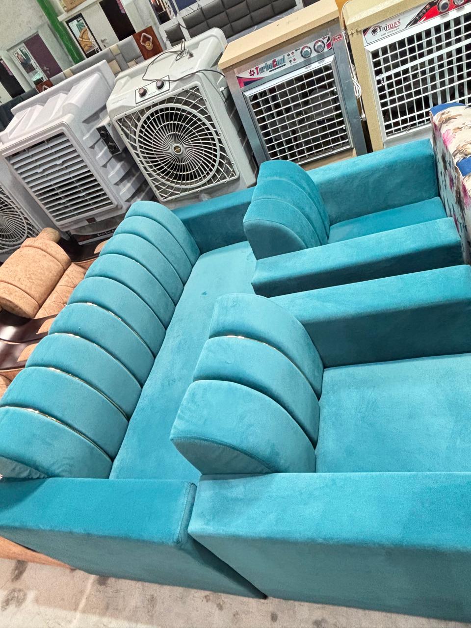 Aqua Plush Modern Sofa modern luxury interiors ke liye design kiya gaya hai. Soft velvet texture aur multi-layer cushioned back support se yeh sofa smart look ke sath perfect comfort deta hai. Trendy homes aur flats ke liye best option.