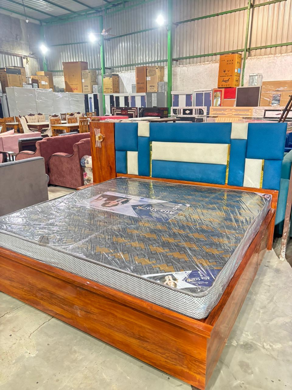 Premium quality velvet cushioned headboard, modern color combination aur strong wooden base — yeh bed aapke room ko ek royal feel deta hai. Comfortable backrest aapke relaxing time ko aur behtar banata hai.