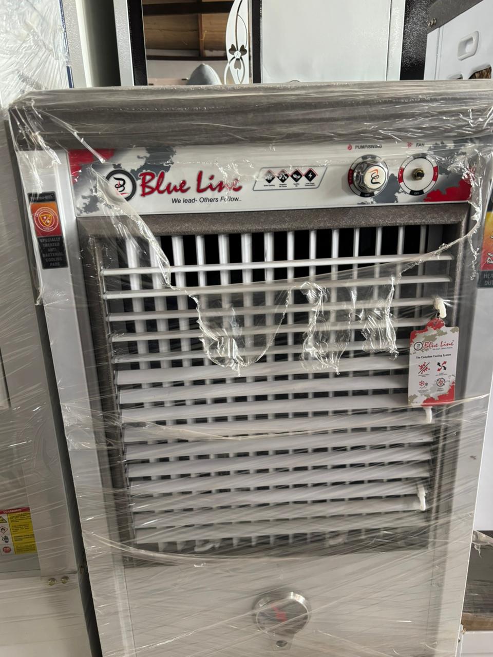 Blue Line Iron Body Air Cooler is a strong and durable cooler made with heavy-duty iron. It provides powerful airflow, low electricity consumption, and reliable cooling for homes and shops.