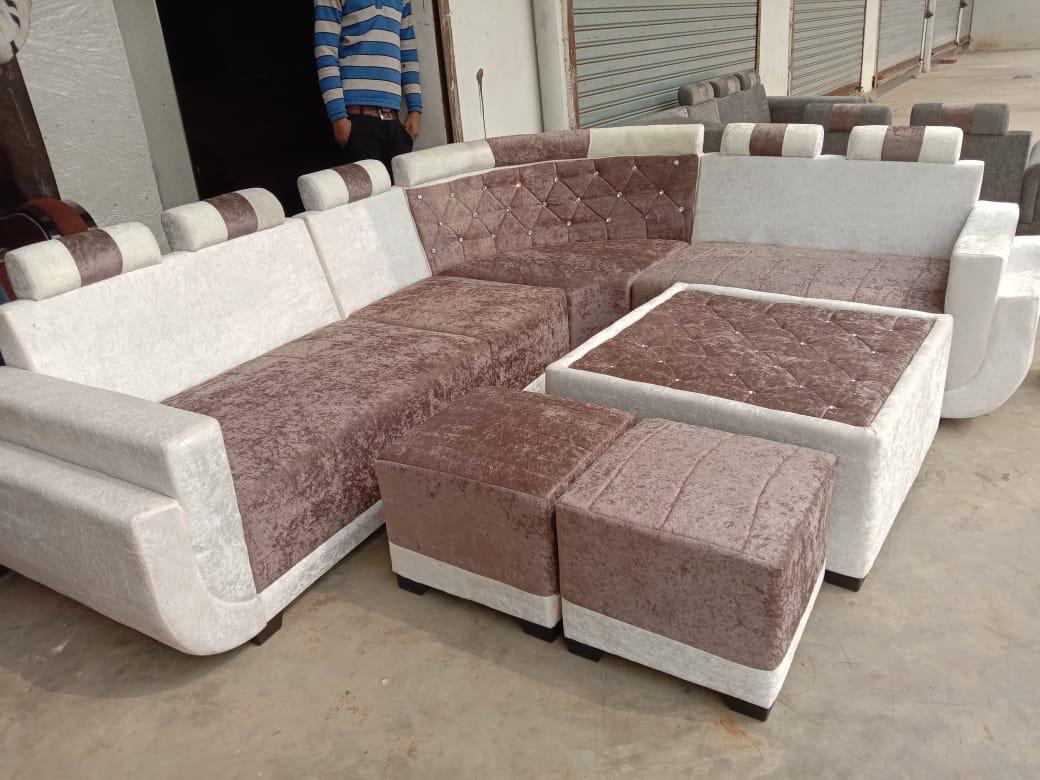 Yeh sofa soft velvet fabric aur strong structure ke sath aata hai. Diamond button design royal look deta hai. Extra ottoman seating ke sath perfect choice gatherings aur comfort dono ke liye.