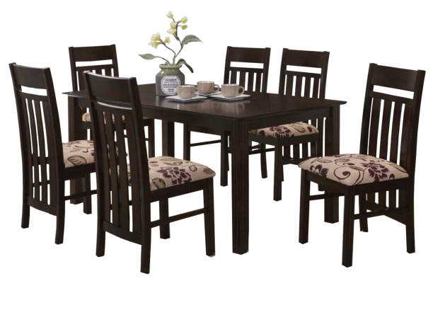 This 6-seater wooden dining set features floral printed cushions for a cozy and elegant look. The strong structure ensures long durability while keeping the dining experience comfortable and stylish. Ideal for everyday family meals.