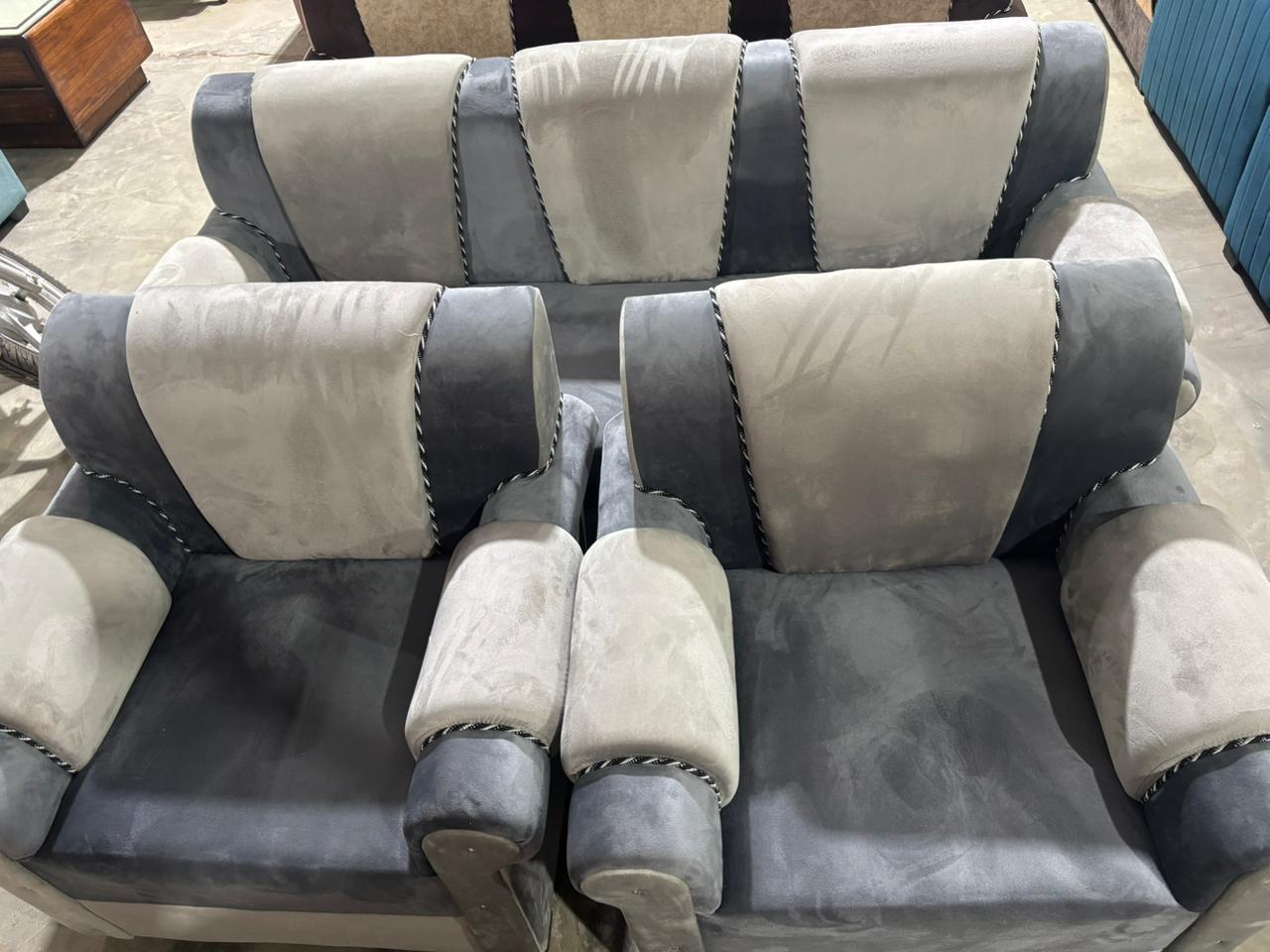 Yeh sofa premium velvet touch fabric se bana hai jo bahut hi soft feel deta hai. Wide cushioned armrests aur strong seating aapko long sitting me bhi perfect comfort provide karti hai. Modern dual-tone colour combination har living room ko elegant bana deta hai. Best for families who prefer comfort + classy look.