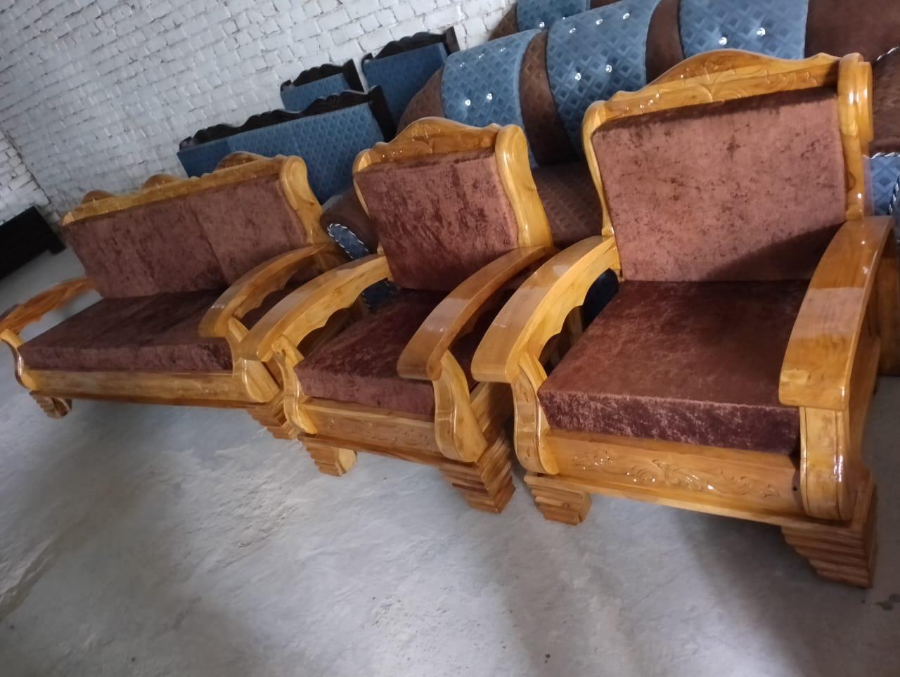 Solid Wood Maharaja Sofa strong solid wood se bana hai aur royal carved design rakhta hai. Soft cushions aur durable fabric se aapko comfort aur luxury ek sath milti hai. Traditional homes ke liye perfect choice.